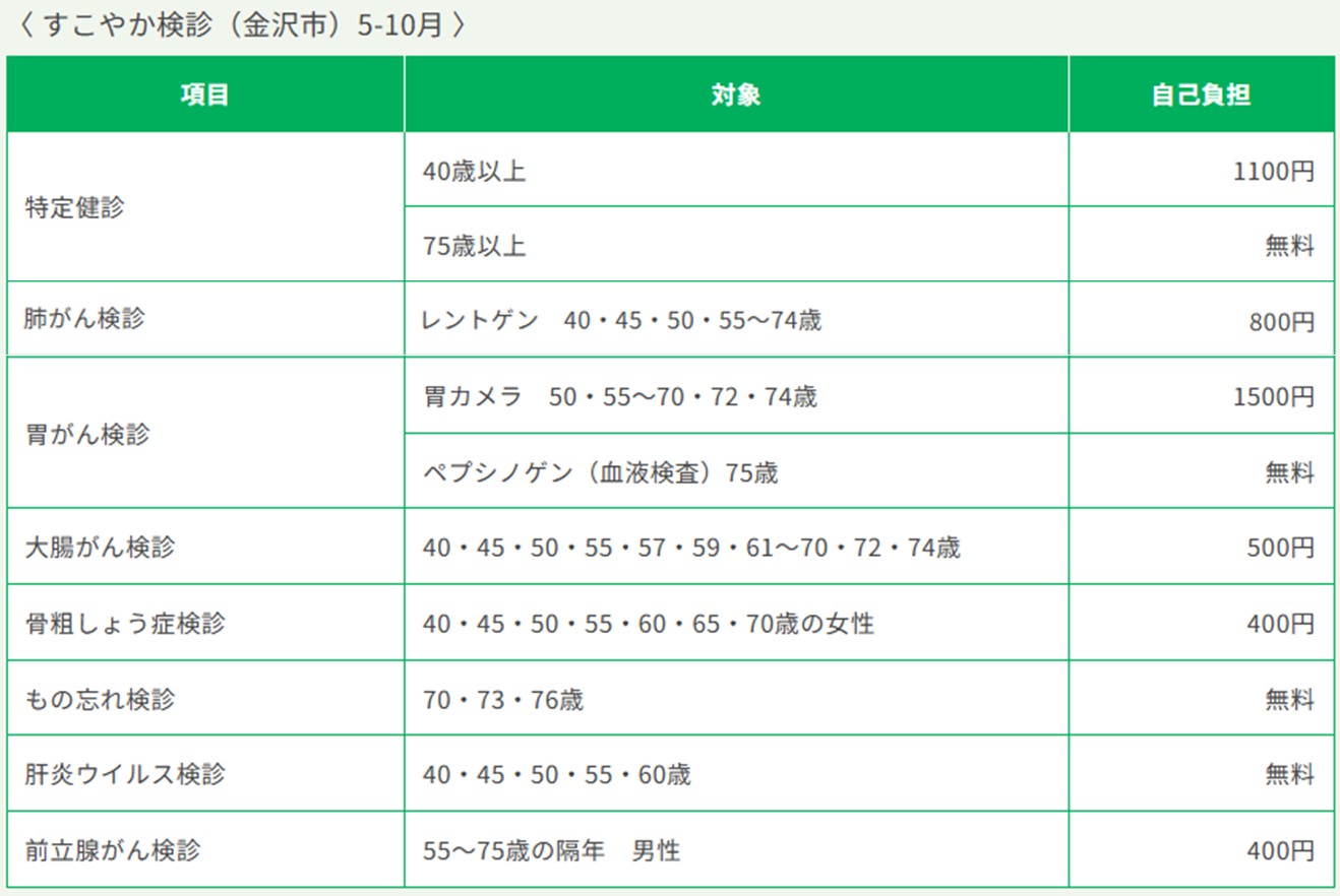 5/1~10/31まで金沢市のすこやか検診を実施します。